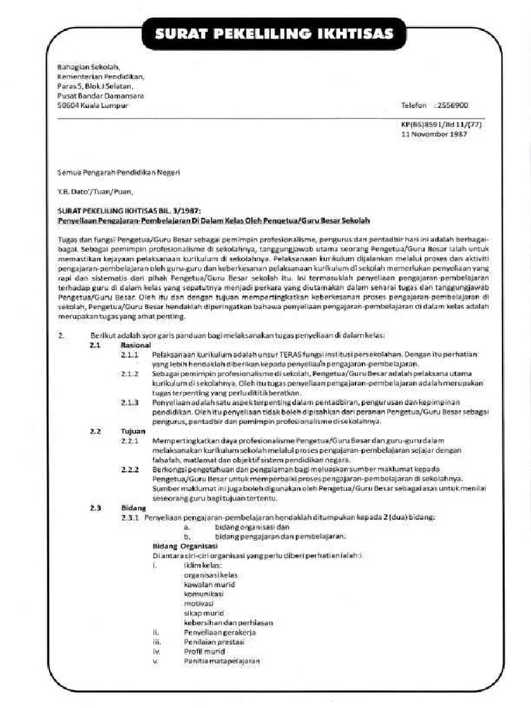 Surat Pekeliling Ikhtisas Bil 3/1999 - Pekeliling Pendidik2u - Pejabat ketua pengarah pendidikan malaysia office of the director general of education malaysia paras 7 blok j pusat bandar damansara level 7 block j damansara town centre 50604 kuala lumpur tel:. Jun 17, 2021 · this surat pekeliling ikhtisas bil 3 1999 penyediaan rekod, as one of the most full of life sellers here will enormously be among the best options to review. To find out more complete and clear information or images, you can visit. Pejabat ketua pengarah pendidikan malaysia office of the director general of education malaysia paras 7 blok j pusat bandar damansara level 7 block j damansara town centre 50604 kuala lumpur tel: The copyright of the image is owned by the owner, this website only displays a few snippets of several keywords that are put together in a post summary. More images for surat pekeliling ikhtisas bil 3/1999 »